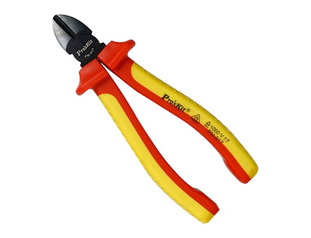 Ο Proskit PM-917 είναι πλαγιοκόφτης ηλεκτρολόγου μήκους περίπου 160 mm, σχεδιασμένος για επαγγελματική χρήση και εργασίες κοπής καλωδίων και σύρματος, ειδικά σε ηλεκτρολογικές εφαρμογές.