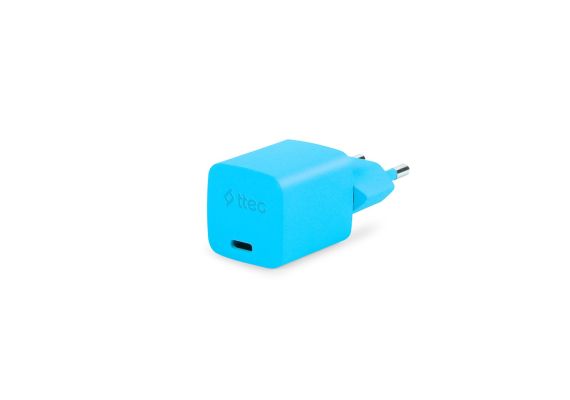 SmartCharger GAN 20W PD Ταχυφορτιστής Ταξιδιού USB-C – USB-C 3A Καλώδιο 120cm, Neon Μπλέ